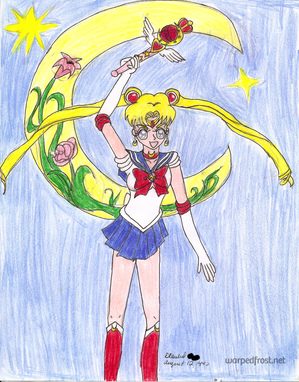 Sailor Moon was the first thing that made me actually study drawing. That is, I wanted to draw the characters so badly that eventually I was watching the show with specific goals in mind, like “Today I’ll keep my eyes on the bows to figure out how they’re drawn.” There was no merchandise or websites I could look at back then for reference, after all. My studies eventually yielded 13-year old me this masterpiece: