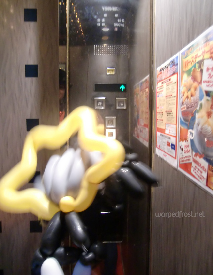 Balloon Seph pushes the button in the elevator for the right floor in the Karaoke kan. Or was it...