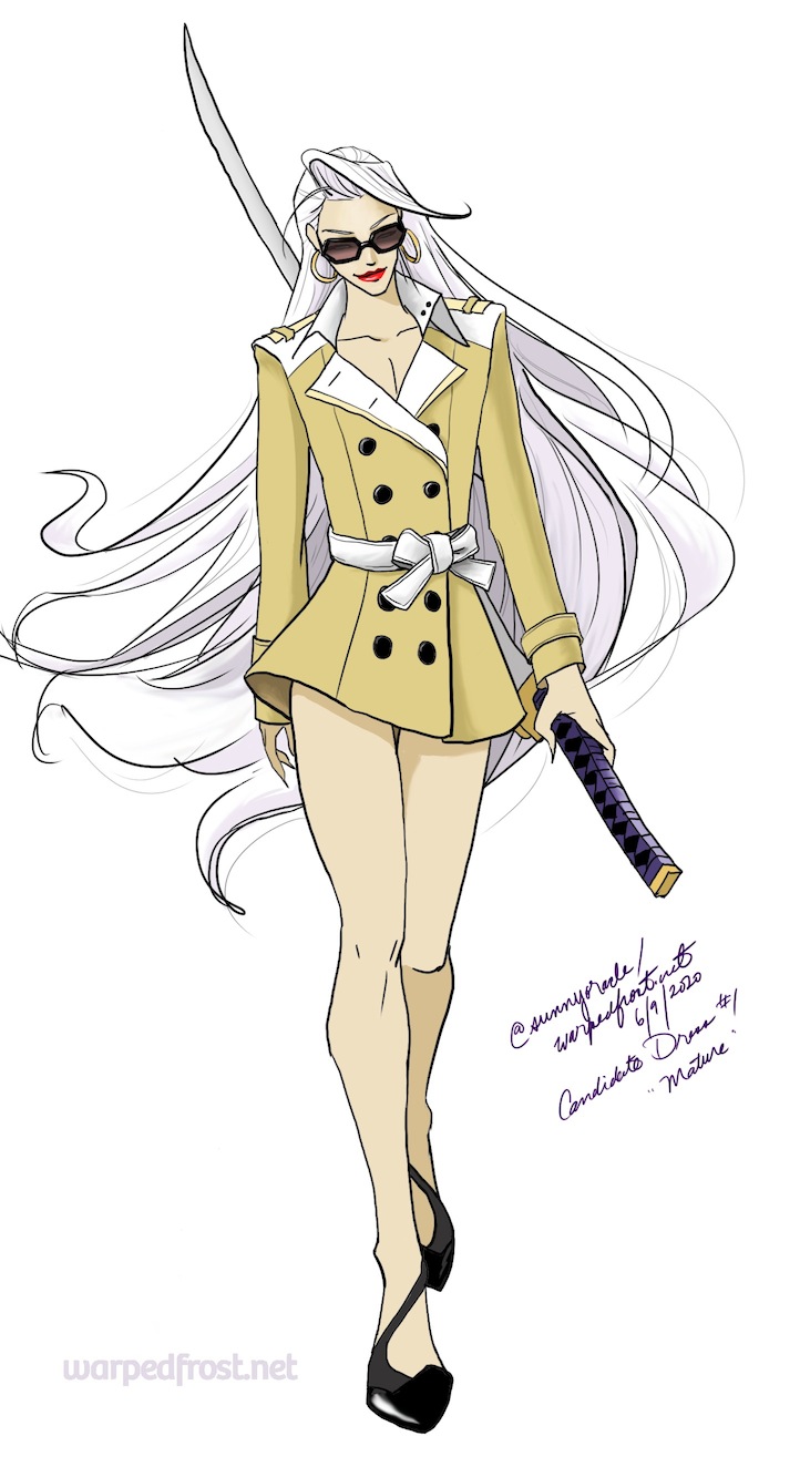 After deciding on the basic silhouette, I started brainstorming from the same three themes as Tifa’s outfits had: mature, sporty, and exotic. (The Sefikura implication of that was unintentional. I actually don’t ship Sephiroth with anybody…though now I feel like maybe Madam M could handle him.) I also decided not to use black, at least not as the main color of any outfit, as that would be, in my opinion, too easy.