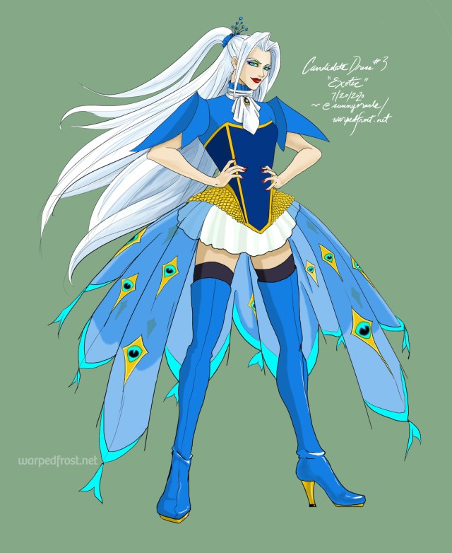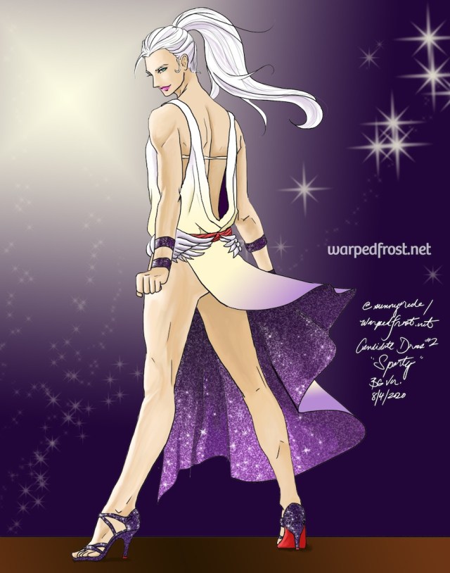 I also had a leftover desire to make his harness the main focus of an outfit; it was something I felt I couldn’t incorporate believably into the bridal candidate dress designs I’d done earlier this summer.